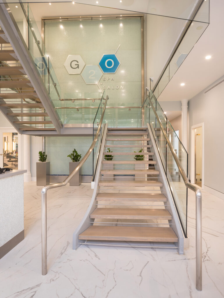 This three-level interior renovation project within a brick and beam office building was designed to provide state of the art facilities. Creating a vibrant and hip salon combined with a relaxing and quiet spa required thoughtful separations – both technical and physical— but with cool modern styling. Utilizing the latest treatments like salt baths, salt inhalation, sauna and salon facilities while providing high indoor air quality systems was a significant technical challenge.