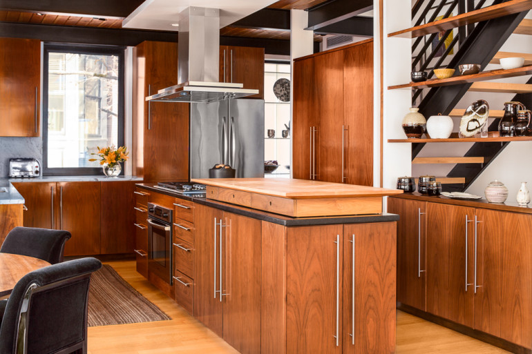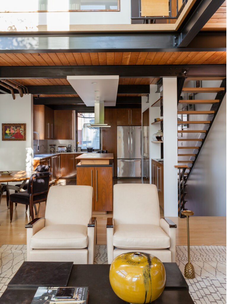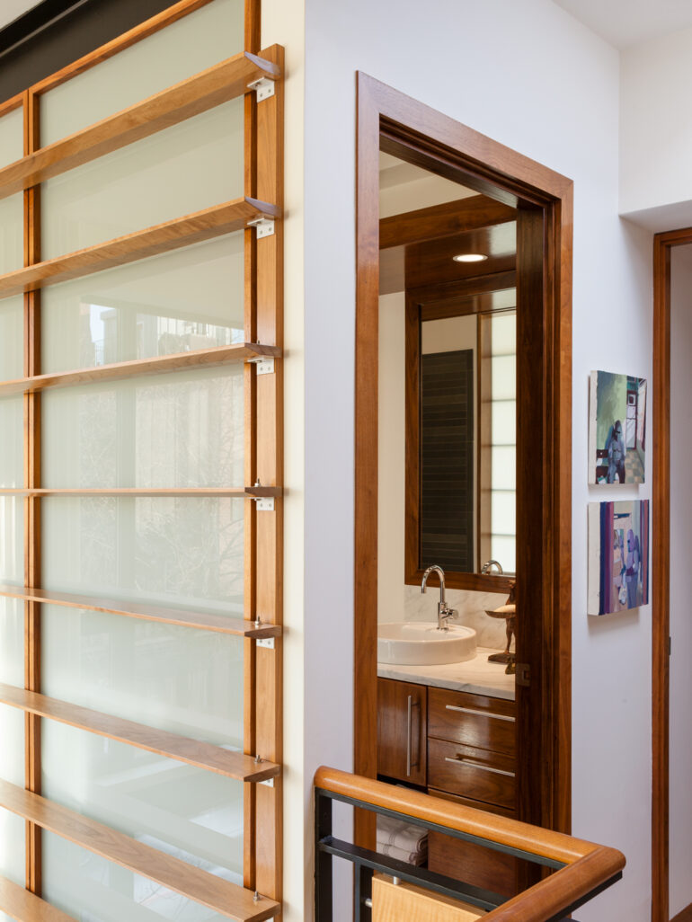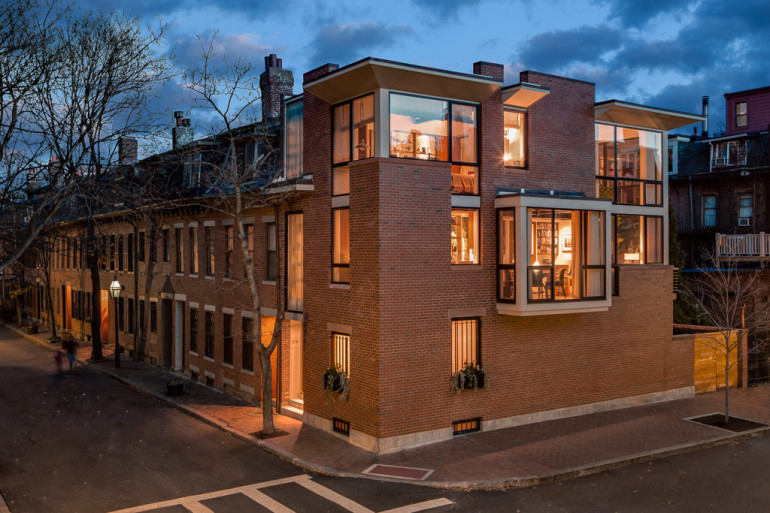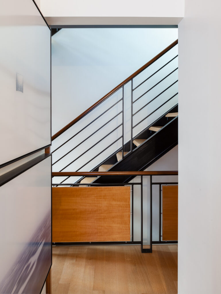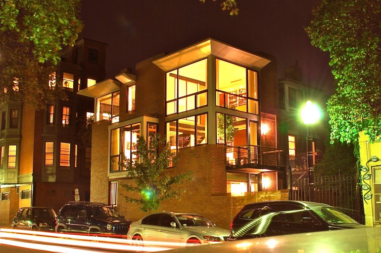 We built our own home on a narrow, 16-foot by fifty-five foot lot among the brick rowhouses of Boston’s historic South End. A modern interpretation of the vernacular, the home’s activity is focused on the second floor with a two-story glass living area, which allows for passive solar heating, along with the sunlight and views the typical rowhouse lacks. Exposed steel framing with fir decking, walnut paneling and marble finishes play an industrial aesthetic against the Modern. Contained within those finishes are LEED Silver systems, materials, technologies and construction methods which make the home sustainable.